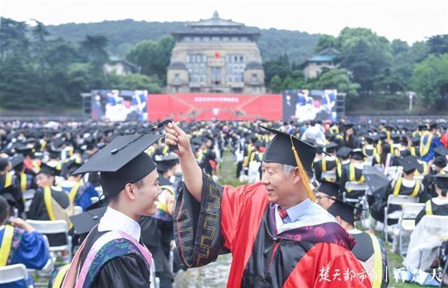 为他们拨穗的“豪华导师团”成员包括:该校党委书记韩进、校长窦贤康等全体在校的校领导,院士李德仁、张俐娜、龚健雅、舒红兵、朱玉贤、李建成、徐红星,人文社科资深教授於可训,以及“千人计划”专家、“长江学者”特聘教授等。