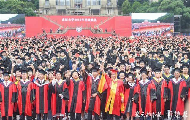 武汉大学今年共有15381名学生毕业,其中,本科生7117人、硕士研究生7191人、博士研究生1073人。到场的1.1万名毕业生,都接受了一对一的拨穗礼,并由数十位摄影师为每个人拍下这一珍贵时刻。