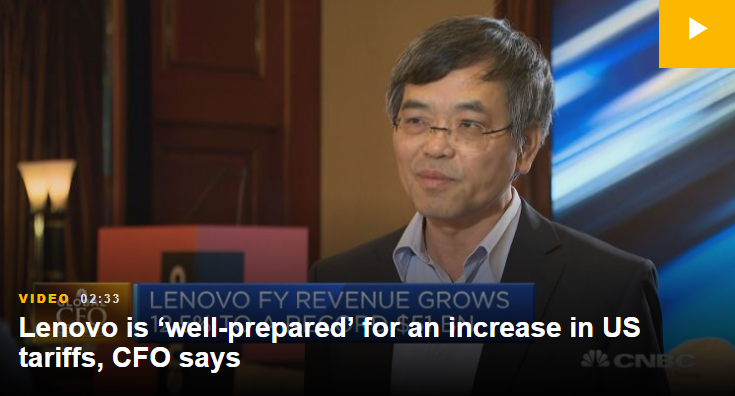 联想首席财务官王伟明在接受CNBC采访时表示:“我们显然做好了充分准备,以防万一。”