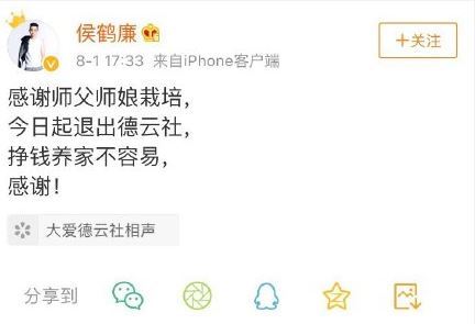 8月1日,德云社又发生了一件大事。德云社鹤字科相声演员侯鹤廉突然在社交媒体上宣布即日起侯鹤廉退出德云社,事发突然瞬间登上了热搜。