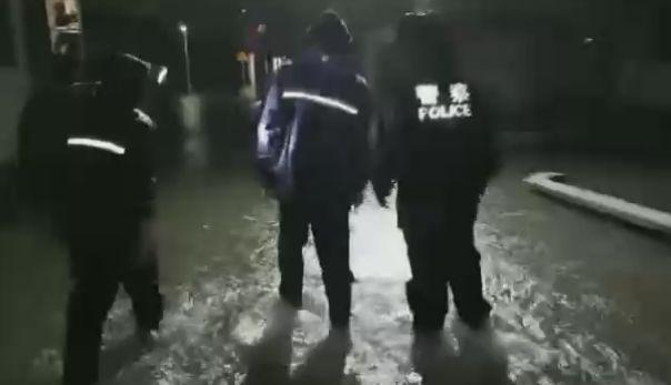 昨天晚上10点多,宁波海曙洞桥镇水已经漫过脚踝,派出所民警一家一家走访居民