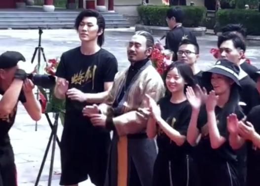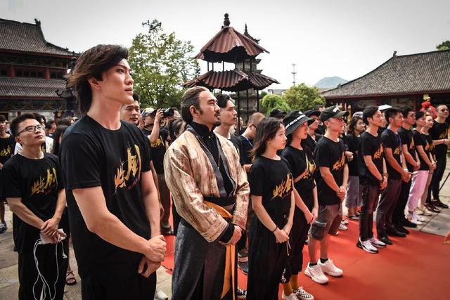 似乎是因为终于有戏可拍,当天吴秀波心情很是不错。当天剧组的工作人员以及大部分演员都身穿统一的胸前印有“炼剑”两字的黑色T恤,而吴秀波则与众不同,不仅大热天的身穿厚重的古装戏服,还戴着假发留着胡子,似乎是想着开机仪式结束后随时开拍。
