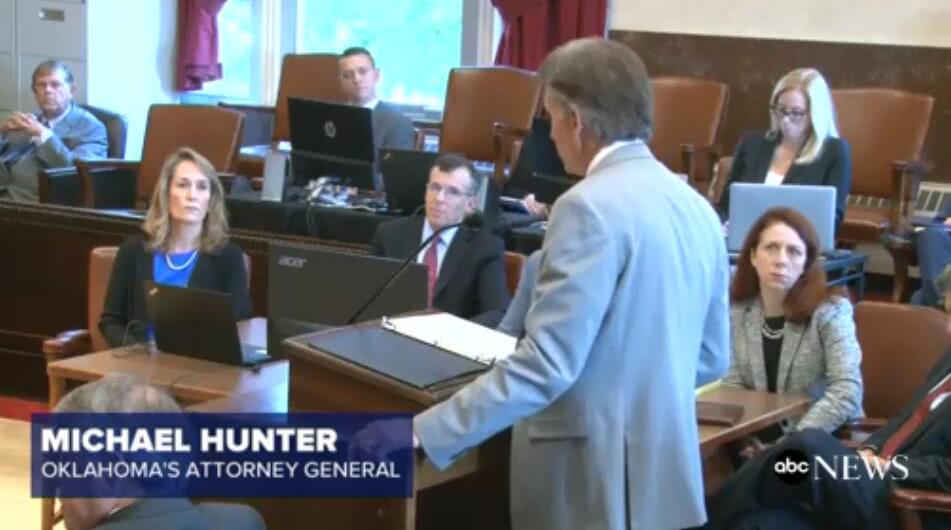 随即在28日开庭,检方对强生提起诉讼。检方律师、俄克拉荷马州检察官迈克?亨特(Mike Hunter)称今天就是强生的“清算之日(day of reckoning)”。亨特认为,全美阿片类药物滥用现象已经成为“美国史上人为造成的最大公共健康危机”,这正是因为强生公司的“贪婪”导致,强生就是“主谋(kingpin)”。