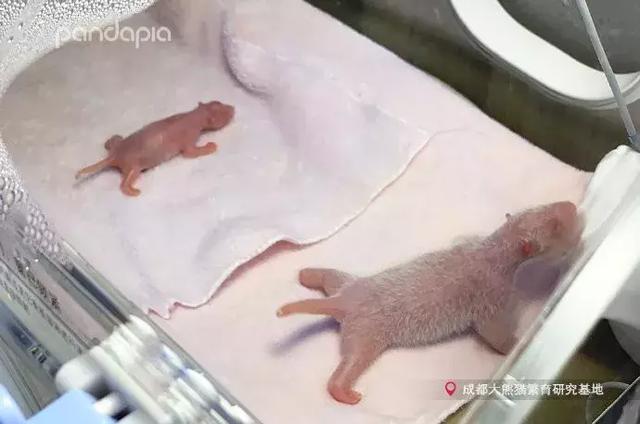 6月11日大熊猫“成大”产下的幼仔比“五一”还要轻几克,她的体重现属于极低、超轻。当这只幼仔出生时,在场的专家和饲养员又紧张又惊讶,因为她的体重仅为正常大熊猫幼仔的四分之一,体长还不到姐姐的三分之二。将双胞胎两姐妹放在一起,立即呈现最萌体型差。