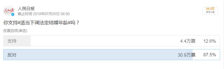 人民日报针对此话题发起的调查显示,82.8%的调查者对此建议持反对意见,呈现压倒性优势。截至6月29日11:30,已有35.3万人参与调查。