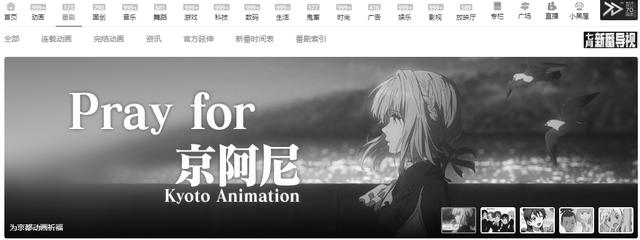 7月18日,日本知名动画制作公司京都动画遭到人为纵火,发生爆炸,目前京都动画死亡人数已达33人。海内外大量网友都对该事件表示了关注,而国内知名视频弹幕网站B站似乎也对此事表示了自己的哀悼,其网页端番剧页面已经全部变成黑白。